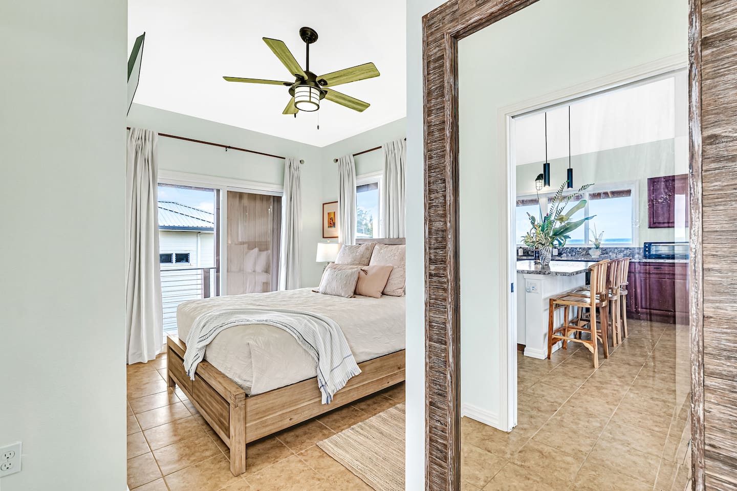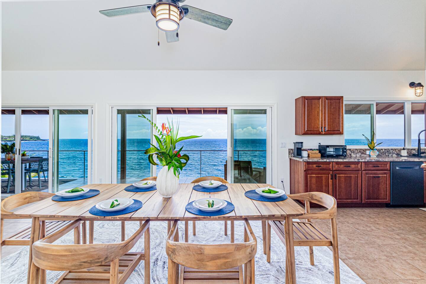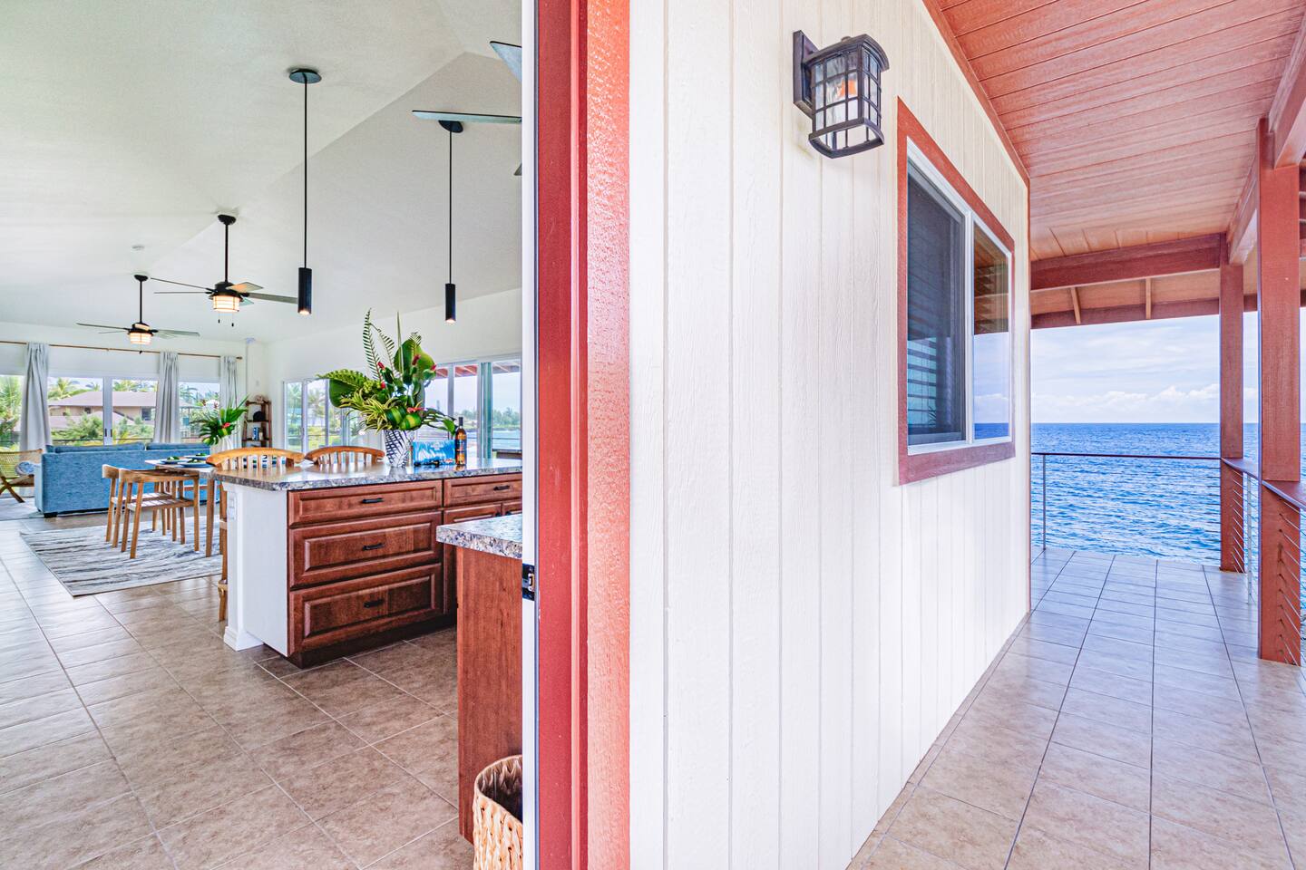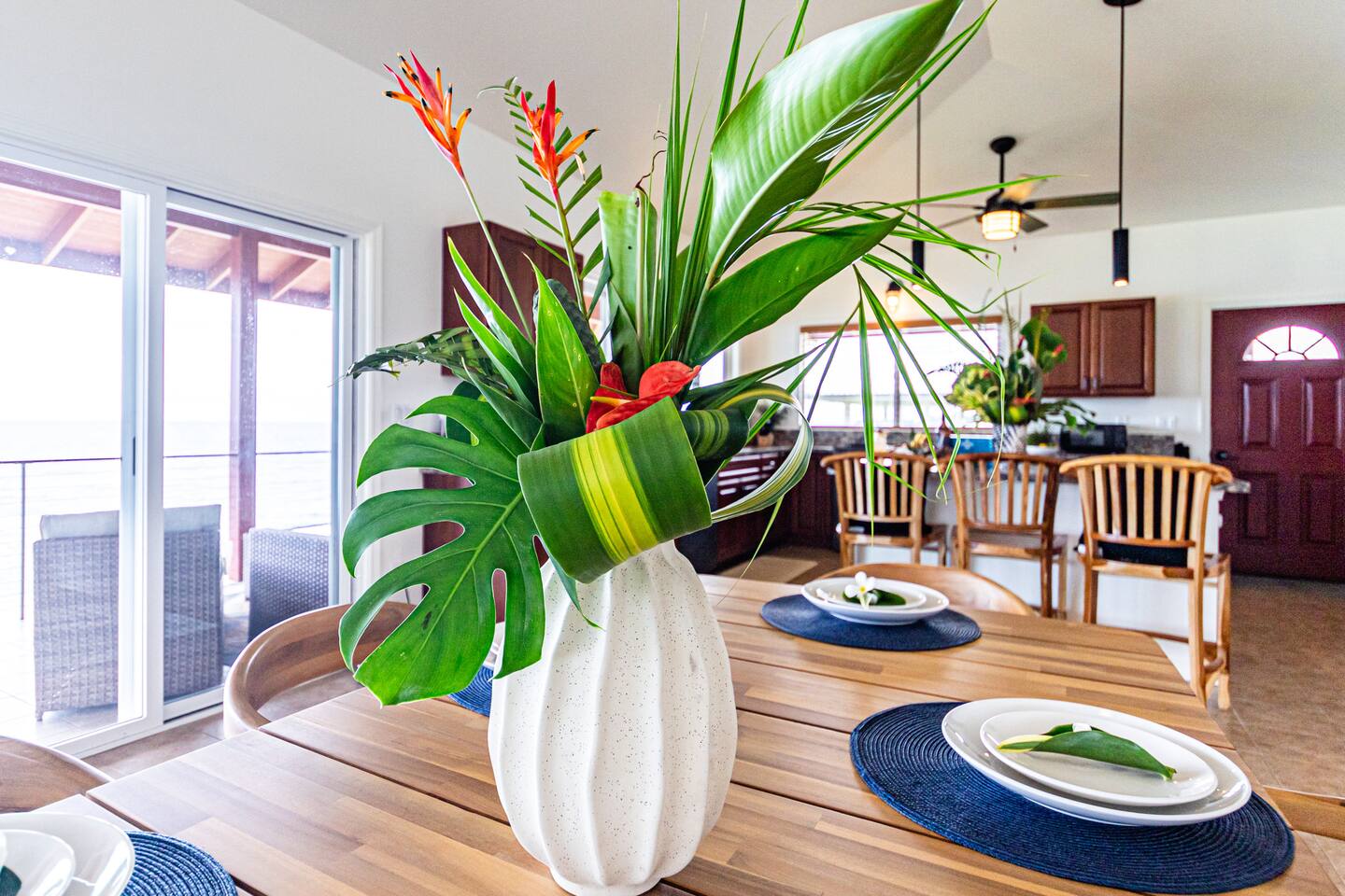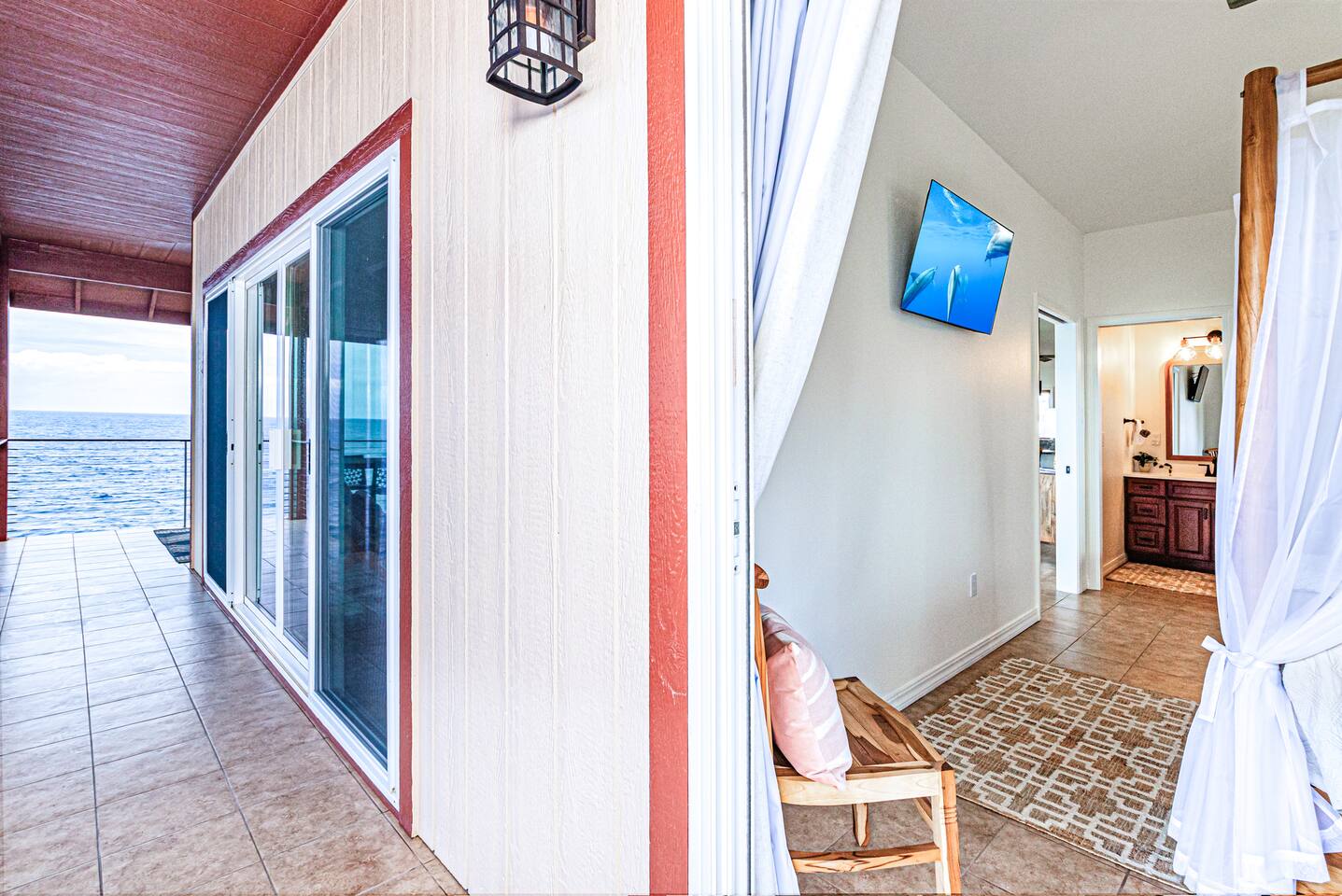 Located on Hawai'i's Big Island (the island of Hawai'i) 25 minutes south of Hilo International Airport. Paradise Ocean Vista is a stunning absolute oceanfront home that feels more like you are on a yacht than at a house. Watch and hear the waves below. Wake up to ocean views from every room! We proudly offer high-quality, comfy Leesa Queen mattresses for your comfortable nights sleep! Beautiful furnishings, designed by NestEgg Designs. The chef-inspired kitchen with new stainless steel appliances is stocked with all the cooking utensils, pots, pans and dishes needed to cook delicious seaside meals. Serve your culinary delights with a side of paradise in a dining area with panoramic ocean views and a sliding door that opens up to the lanai. For a complete oceanfront dining experience, pull up a chair on the lanai dining table or gather around the outdoor seating area. Allow the Hawaiian sea breeze to accompany your views of the beautiful lava rock cliffs and black sands of your paradise retreat. There are two comfortable and stylish bedrooms from which to choose. The first bedroom features ocean views, a queen bed, floor to celling blackout curtains, streaming TV, A/C, ceiling fan, dimmable lighting and a sliding screen door that leads out to the oceanfront lanai. The second bedroom features ocean views, a queen bed, streaming TV, ceiling fan and dimmable lighting. The living room also features a Queen sized pullout couch. Freshening up is a joy in the two well-appointed en suite bathrooms featuring a shower with handheld sprayer, soft towels, hairdryer, toiletries (shampoo, conditioner, body wash) and other thoughtful travel amenities like sunscreen and bug repellant for your waterfall hikes. Paradise Ocean Vista Amenities include: Free WiFi. Fastest WiFi available on the island (fiber), WiFi mesh system covers the entire property in case you want to work outside on the beautiful lanai, Outdoor lounge area, Air conditioner and dehumidifier, free Parking, Full-sized stainless steel refrigerator, Bosch stove w/ convection oven, cooking utensils, pots, pans, dishes, 55-inch HiDef Smart TV, Comfortable mattresses (Leesa) Washer and Dryer, dishwasher, Contactless check-in, boogie/body surfing boards, beach towels and a cooler for your beach excursions. Your host Chase holds an active Hawaii real estate license RS-88207 with Hilo Bay Realty, LLC