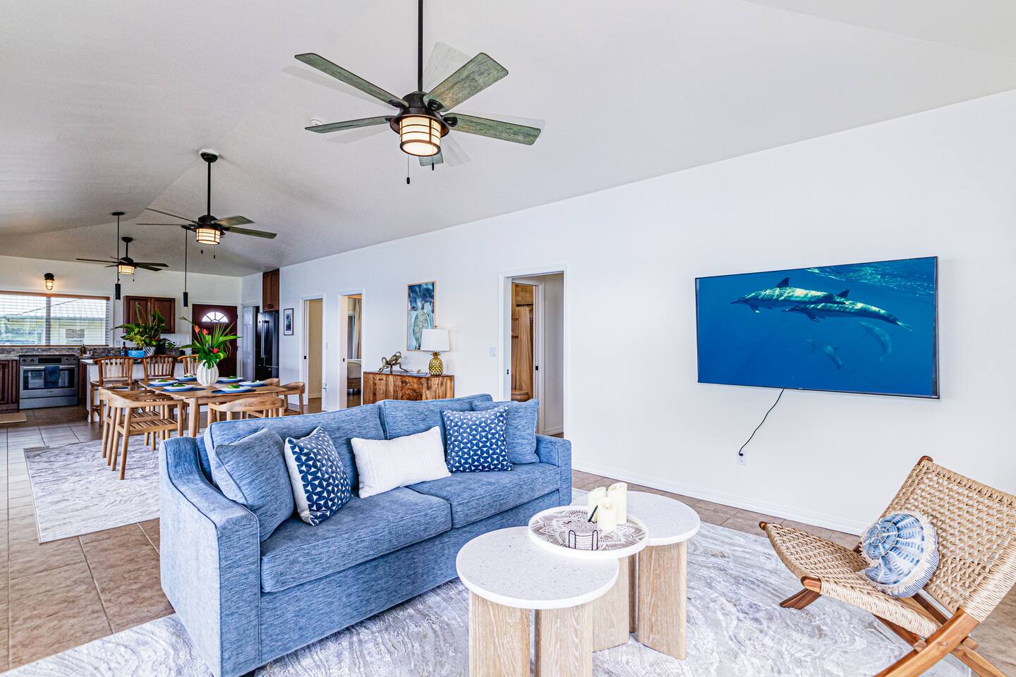 Quiet Hours are 9pm to 7am No shoes in the house. This is common throughout Hawai'i. No Parties or Events allowed. No outside guests. No visitors. Please take care of the furnishings. Do not move the furniture. Please keep the doors and windows closed at all times for two reasons. 1. The salt spray from the ocean is highly corrosive and will destroy your electronics and anything metal in no time including the appliances in the rental. 2. We can go from a beautiful sunny day to torrential sideways rain in no time! You will want the doors and windows closed when this happens. Please turn the Air Conditioning/Dehumidifier off when you leave and when you are not using it. Hawaii has the highest electricity rates in the country, so please help with this! Our entire property is a non-smoking environment. If you need to smoke, please smoke outside the front gate near the street and dispose of your cigarettes afterward in the trash can. Please take care of the furnishings. Do not move any of the furniture or rocks on the property. Please turn the Air Conditioning off when you leave and when you are not using it. Hawaii has the highest electricity rates in the country, so please help with this! Please do not touch or close the gate. Local regulations require us to keep the gate open at all times for emergency vehicles. Please do not move the boulders in front of the gate for any reason. For your safety and security we have 24 hour security and two (2) cameras on the property facing the outside perimeter of the house so we can see if any unauthorized people enter the property. No cameras face the interior of the house. Per AirBnB rules, there are no cameras inside the house. Tampering with or shutting off the security cameras is not allowed and can end your reservation. If you fail to leave the Accommodation by the agreed check-out time, you may be held liable for the business impact and damages. Beginning one-hour after the agreed check-out time, we have the right, if you have not left the Accommodation by such time, to charge you two (2) times the average nightly rate of your Reservation, and again every twenty-four (24) hours of your overstay until you vacate the Accommodation. Violation of any of the above that results in additional costs will be billed to the guests, including but not limited to: noise complaint fines, excessive cleaning services, repair costs for damaged items. Guests agree to pay additional fees within 72 hours of checkout. Please note that we expect all guests to follow all rules at all times. We are willing to enforce all rules up to and including ending the reservation.
