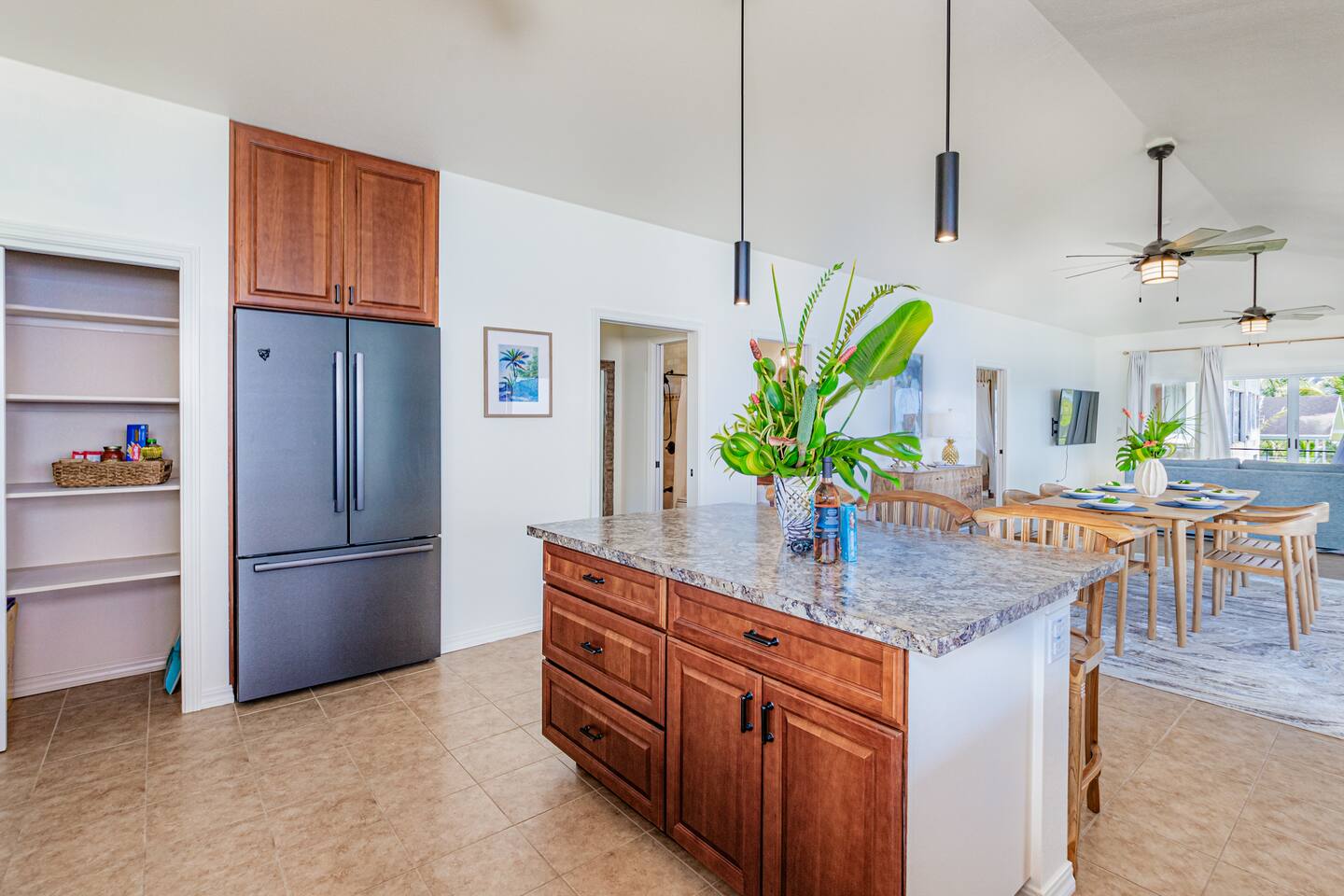 Take it easy at this gorgeous and peaceful Hawaiian getaway where panoramic ocean views wrap around the house! Watch dolphins, sea turtles, monk seals and whales (whale season is November-March) right from your lanai! The interiors were thoughtfully designed by one of the top interior designers on the island. The chef's kitchen is fully stocked with everything you need to make amazing meals from home. The spa-like bathrooms are great for relaxing. Air conditioned, laundry! Has tons of amenities!