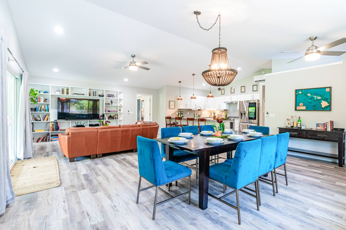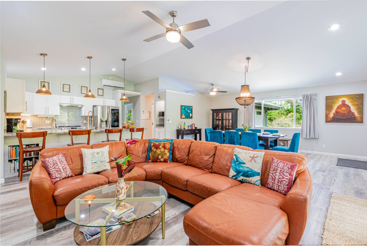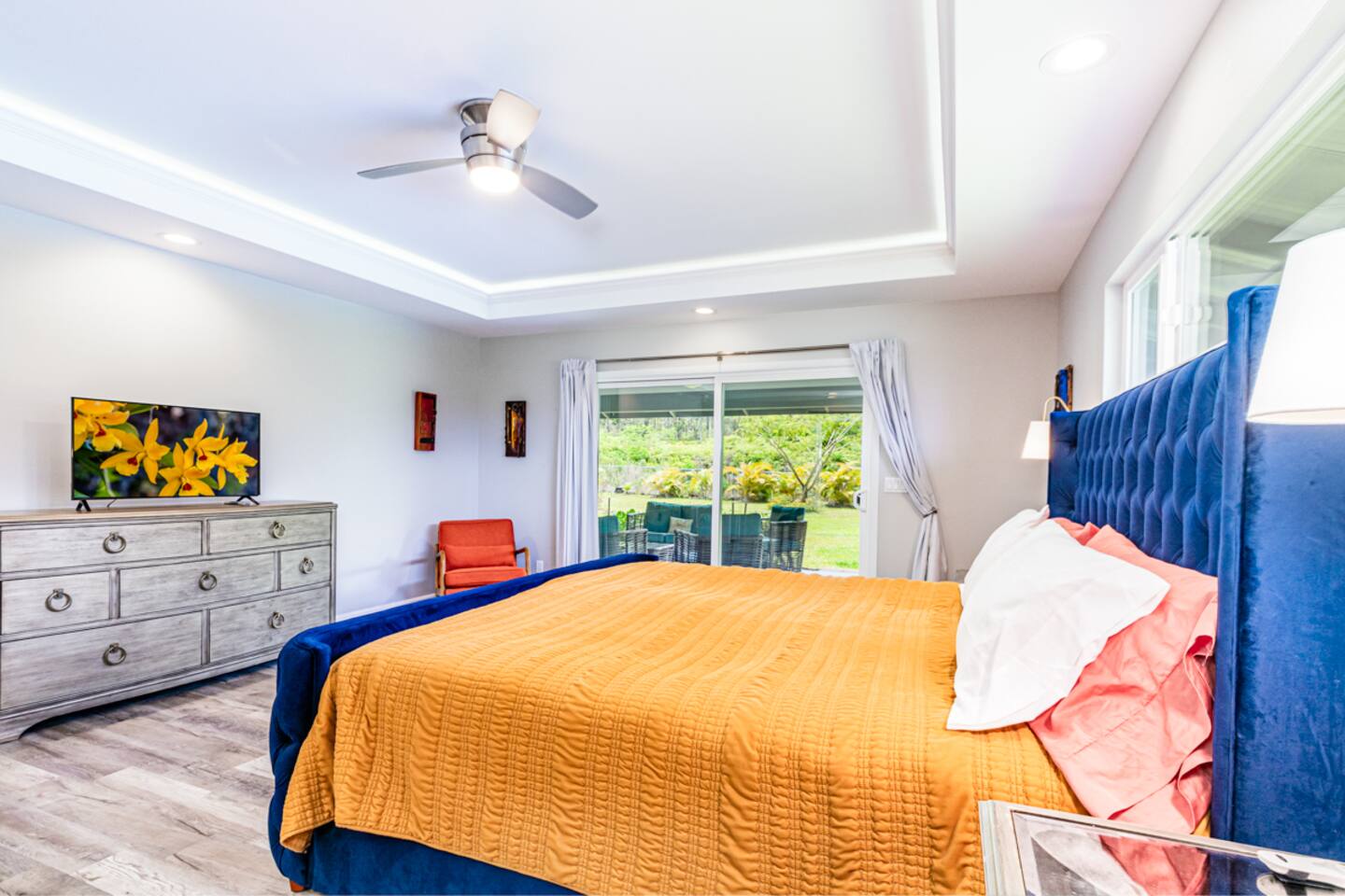 House Rules: Quiet Hours are 9pm to 7am No shoes in the house. This is common throughout Hawai'i. No Parties or Events allowed. No outside guests. No visitors. Please take care of the furnishings. Do not move the furniture. Please turn the Air Conditioning/Dehumidifier off when you leave and when you are not using it. Hawaii has the highest electricity rates in the country, so please help with this! Our entire property is a non-smoking environment. If you need to smoke, please smoke outside the house near the gate and dispose of your cigarettes afterward in the trash can. Please keep the 2 gates closed at all times to keep out wild pigs. For your safety and security we have 24 hour security and one (1) camera on the property facing the outside perimeter of the house so we can see if any unauthorized people enter the property. No cameras face the interior of the house. Per AirBnB rules, there are no cameras inside the house. Tampering with or shutting off the security camera is not allowed and can end your reservation. If you fail to leave the Accommodation by the agreed check-out time, you may be held liable for the business impact and damages. Beginning one-hour after the agreed check-out time, we have the right, if you have not left the Accommodation by such time, to charge you two (2) times the average nightly rate of your Reservation, and again every twenty-four (24) hours of your overstay until you vacate the Accommodation. Violation of any of the above that results in additional costs will be billed to the guests, including but not limited to: noise complaint fines, excessive cleaning services, repair costs for damaged items. Guests agree to pay additional fees within 72 hours of checkout. Please note that we expect all guests to follow all rules at all times. We are willing to enforce all rules up to and including ending the reservation.