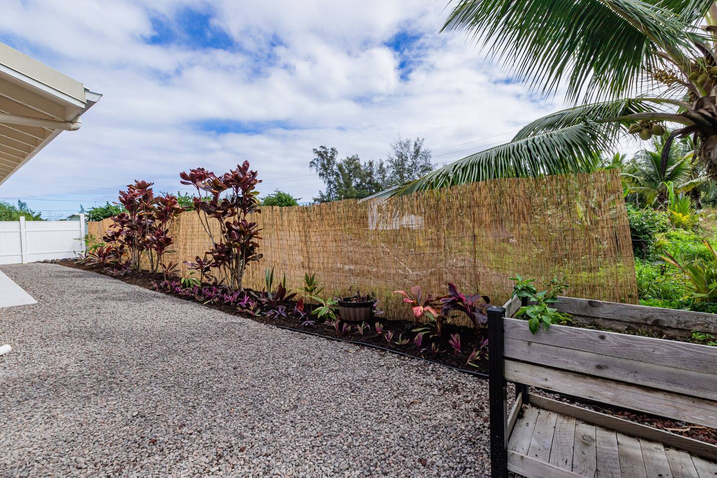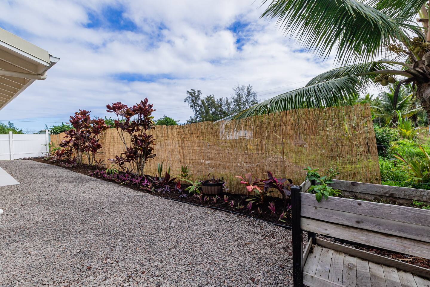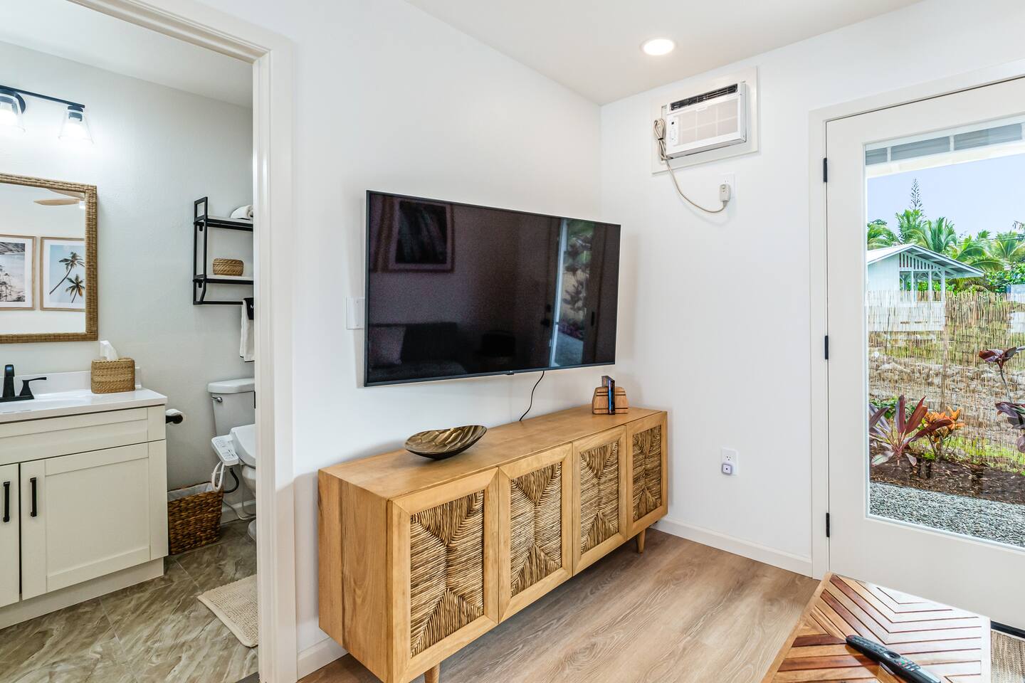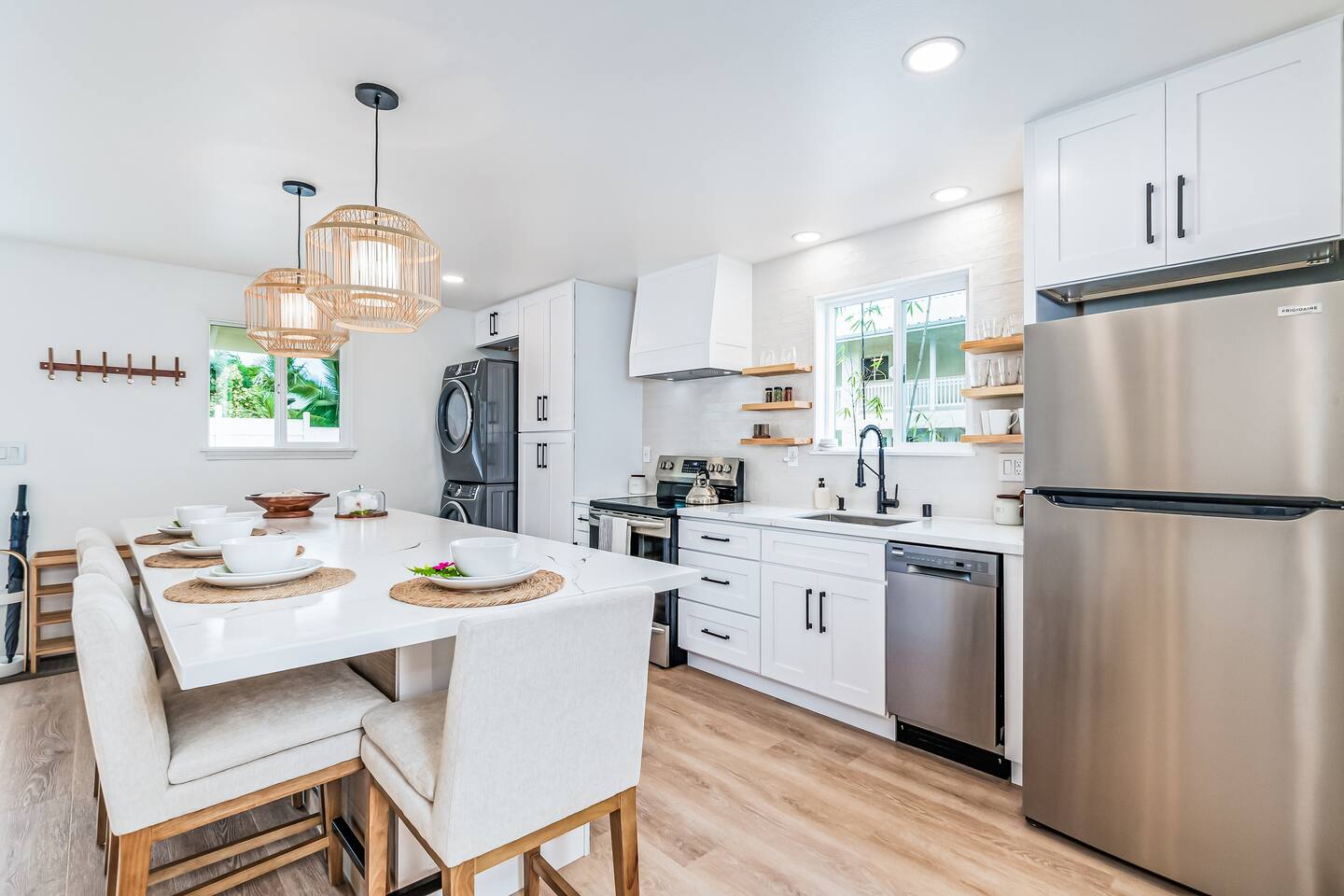 Sunrise Ohana is a cozy and luxurious 2 Bedroom 1 Bath with everything you could want located in a gorgeous and very walkable neighborhood. The chef's gourmet kitchen features an oven, stove, dishwasher, full refrigerator and freezer, a washer and dryer with detergent and stain remover and a gorgeous dine-in kitchen island for 4. The living room features a large Smart TV to stream your favorite shows and a door out to the garden and patio. The main bedroom has a Queen sized bed, fine cotton linens, dimmable reading lights, ceiling fan, AC unit with remote, side chair, full closet for storage of clothing and suitcases, full sized mirror, private entry sliding door to the tropical garden. The second bedroom has a Full sized bed, fine cotton linens, dimmable reading lights, ceiling fan, desk with chair, full closet for storage of clothing and suitcases, full sized mirror, private entry sliding door to the tropical garden. The house is fully fenced with a security gate and offers free parking for at least two vehicles.