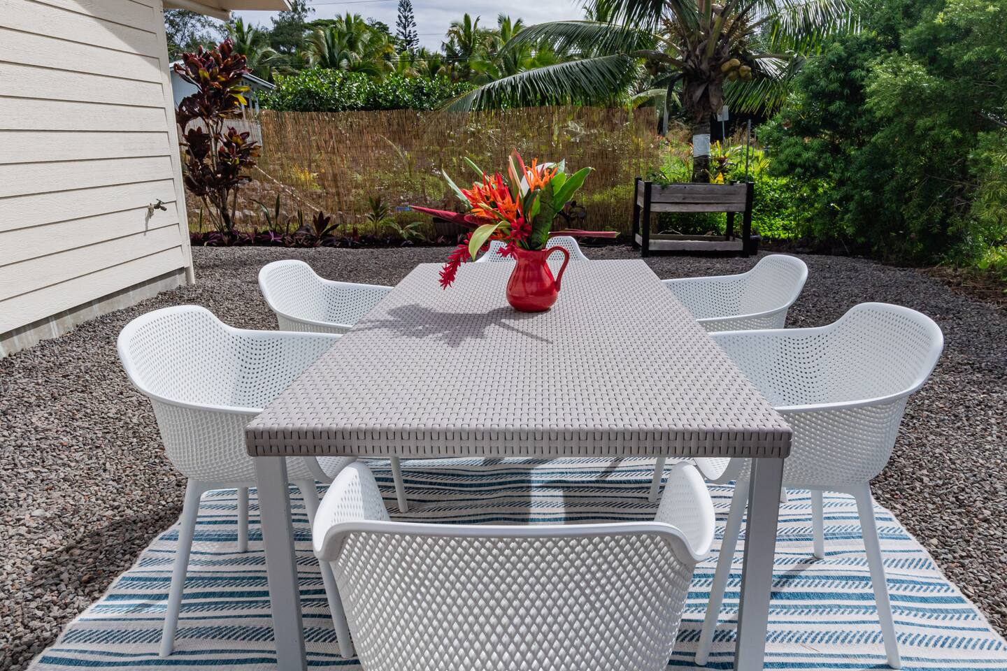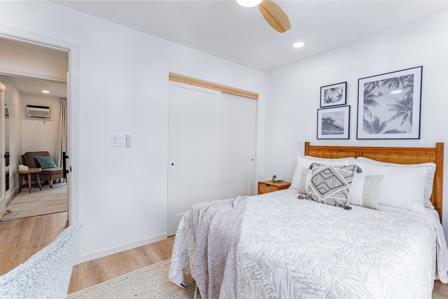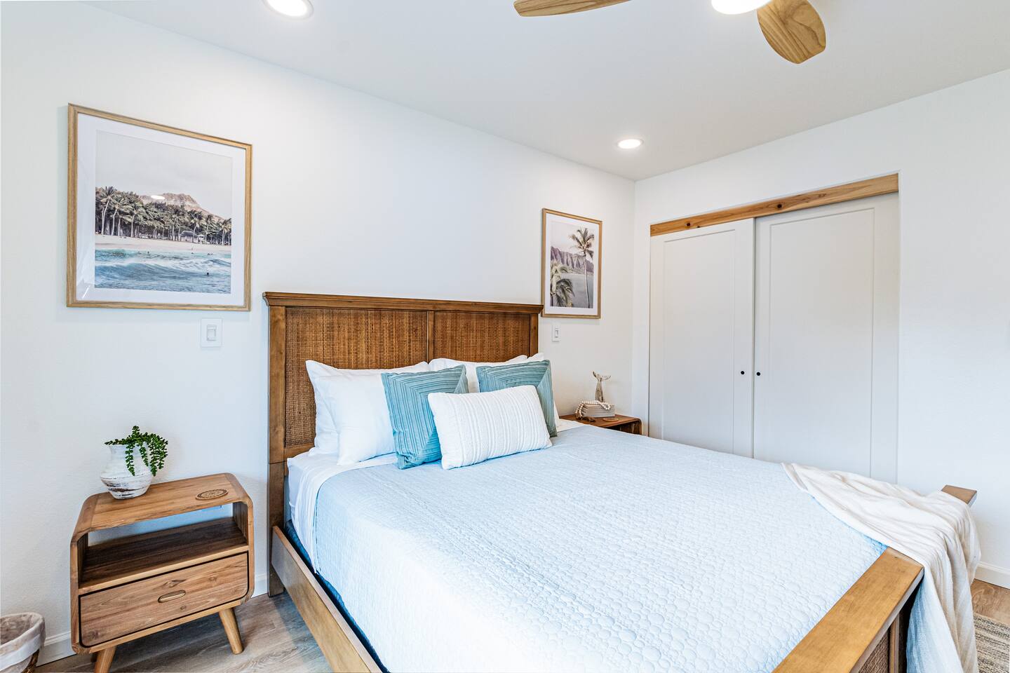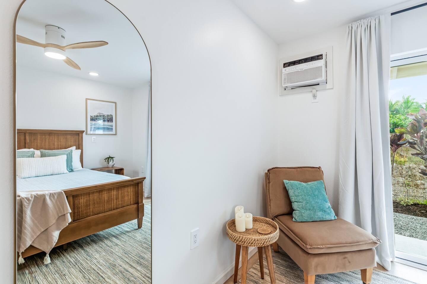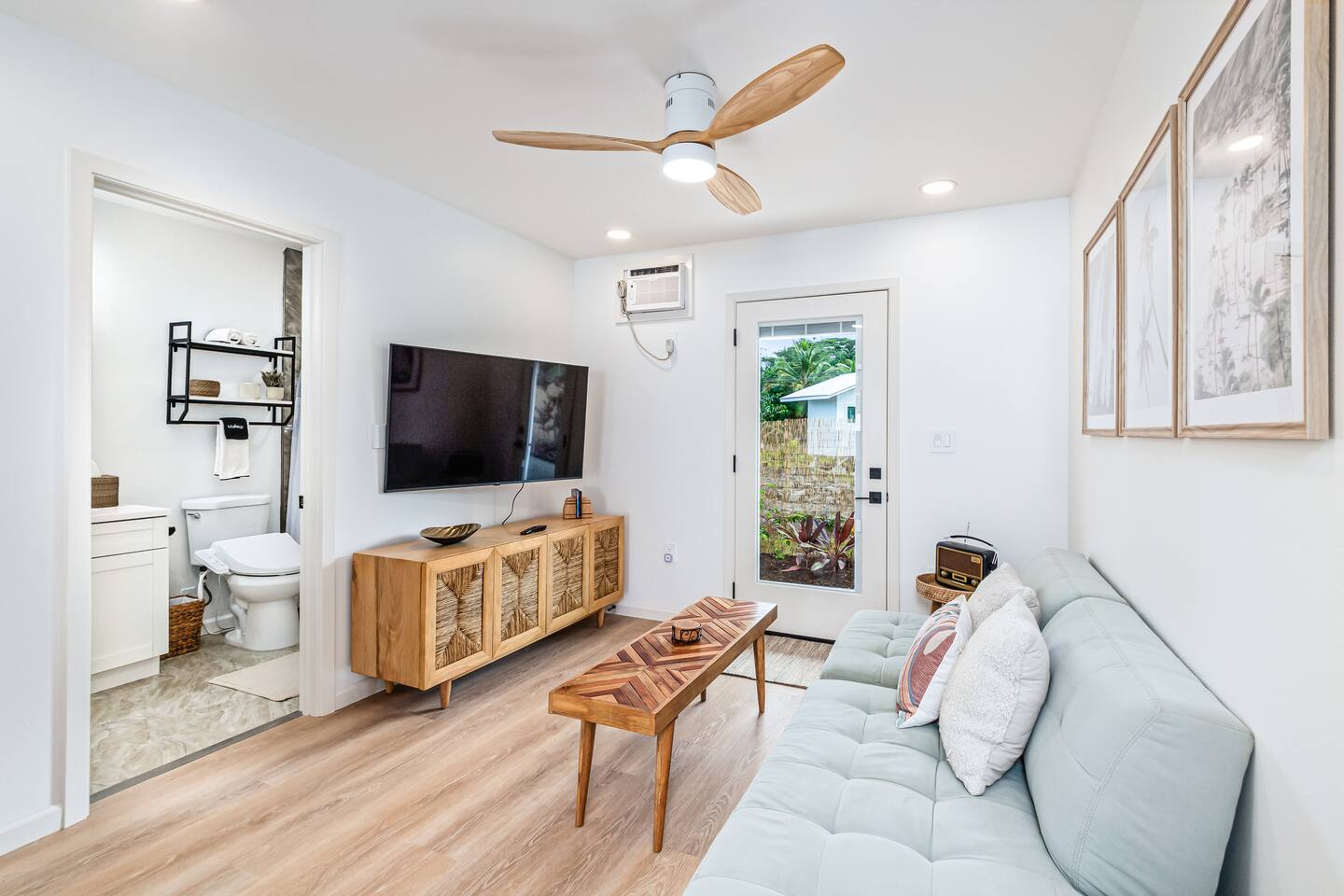 Sunrise Ohana is a cozy and luxurious 2 Bedroom 1 Bath with everything you could want located in a gorgeous and very walkable neighborhood. The chef's gourmet kitchen features an oven, stove, dishwasher, full refrigerator and freezer, a washer and dryer with detergent and stain remover and a gorgeous dine-in kitchen island for 4. The living room features a large Smart TV to stream your favorite shows and a door out to the garden and patio. The main bedroom has a Queen sized bed, fine cotton linens, dimmable reading lights, ceiling fan, AC unit with remote, side chair, full closet for storage of clothing and suitcases, full sized mirror, private entry sliding door to the tropical garden. The second bedroom has a Full sized bed, fine cotton linens, dimmable reading lights, ceiling fan, desk with chair, full closet for storage of clothing and suitcases, full sized mirror, private entry sliding door to the tropical garden. The house is fully fenced with a security gate and offers free parking for at least two vehicles.