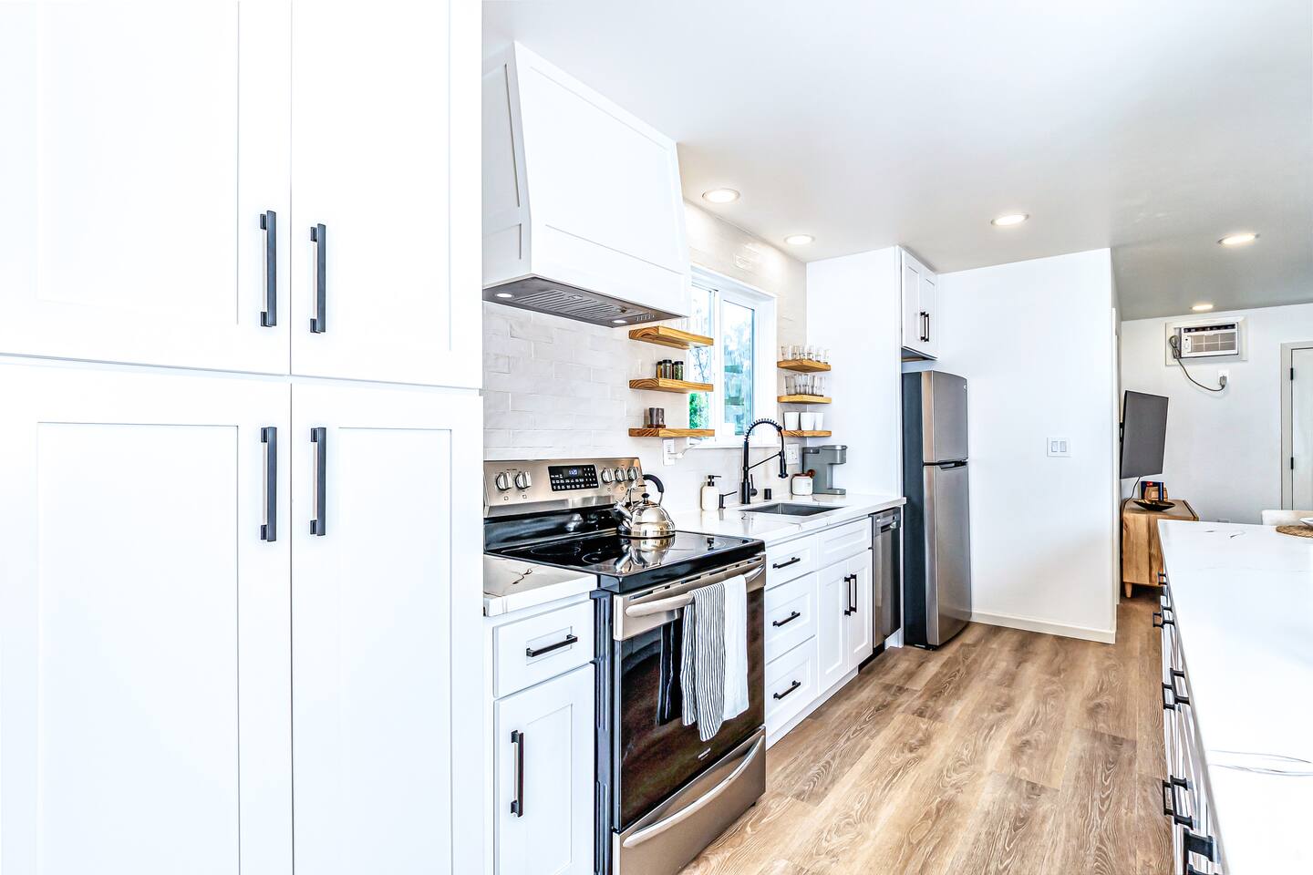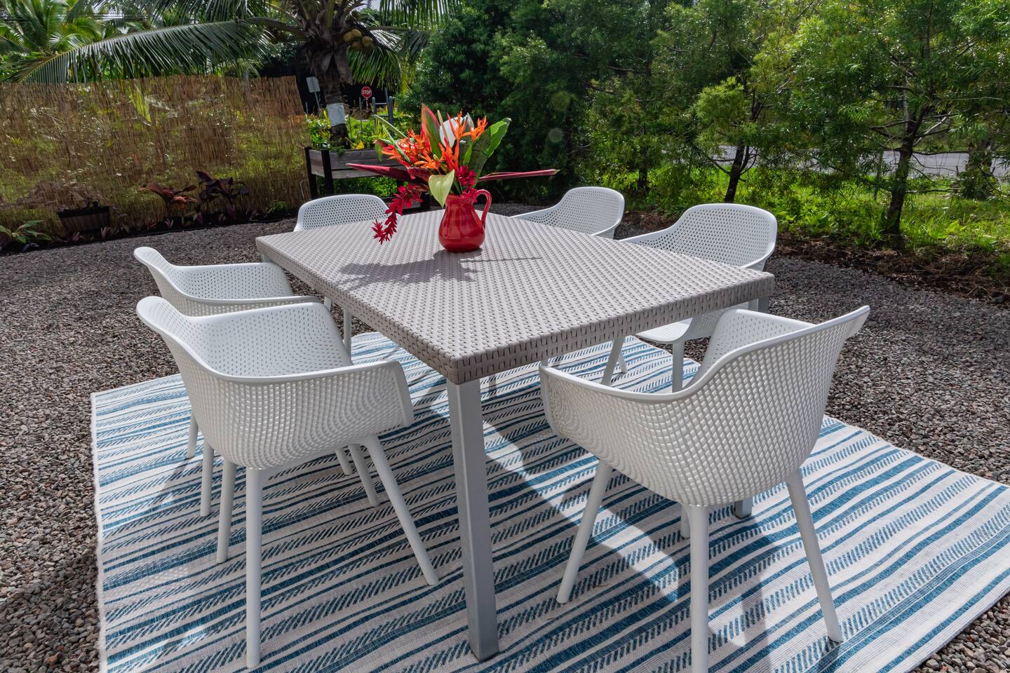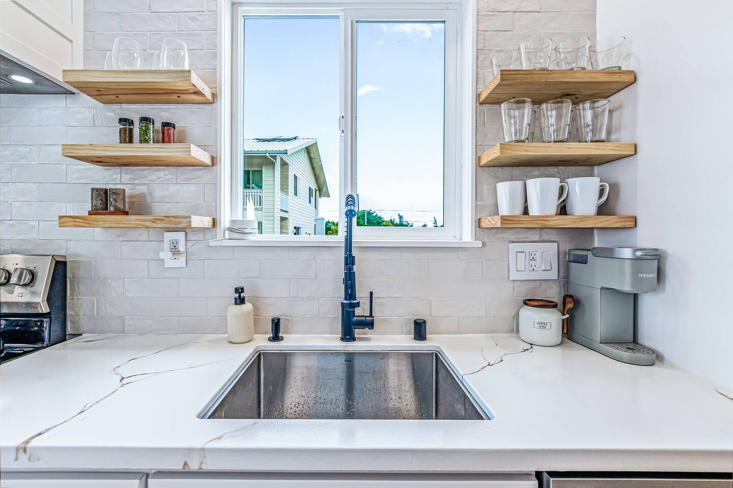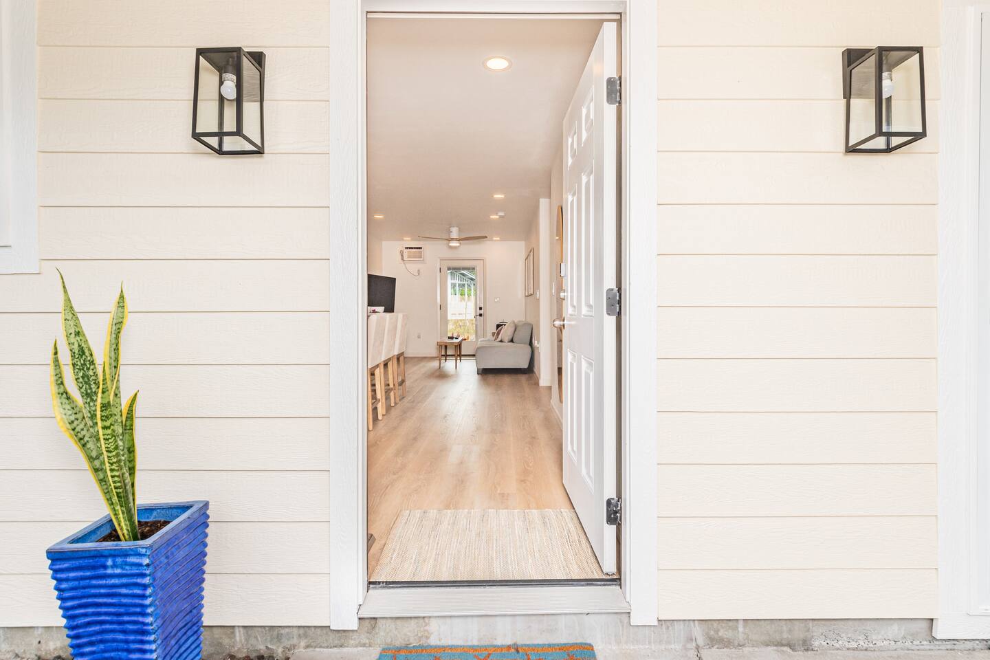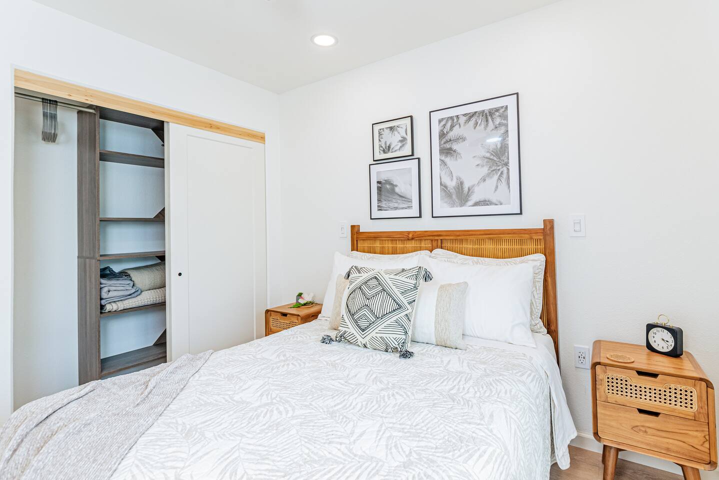 Sunrise Ohana is a cozy and luxurious 2 Bedroom 1 Bath with everything you could want located in a gorgeous and very walkable neighborhood. The chef's gourmet kitchen features an oven, stove, dishwasher, full refrigerator and freezer, a washer and dryer with detergent and stain remover and a gorgeous dine-in kitchen island for 4. The living room features a large Smart TV to stream your favorite shows and a door out to the garden and patio. The main bedroom has a Queen sized bed, fine cotton linens, dimmable reading lights, ceiling fan, AC unit with remote, side chair, full closet for storage of clothing and suitcases, full sized mirror, private entry sliding door to the tropical garden. The second bedroom has a Full sized bed, fine cotton linens, dimmable reading lights, ceiling fan, desk with chair, full closet for storage of clothing and suitcases, full sized mirror, private entry sliding door to the tropical garden. The house is fully fenced with a security gate and offers free parking for at least two vehicles.